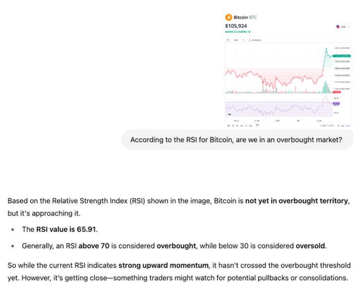 ChatGPT doesnât invent the signals. It explains what they mean in context, showing whether the conditions look more bullish or bearish based on how Bitcoin has behaved in the past.