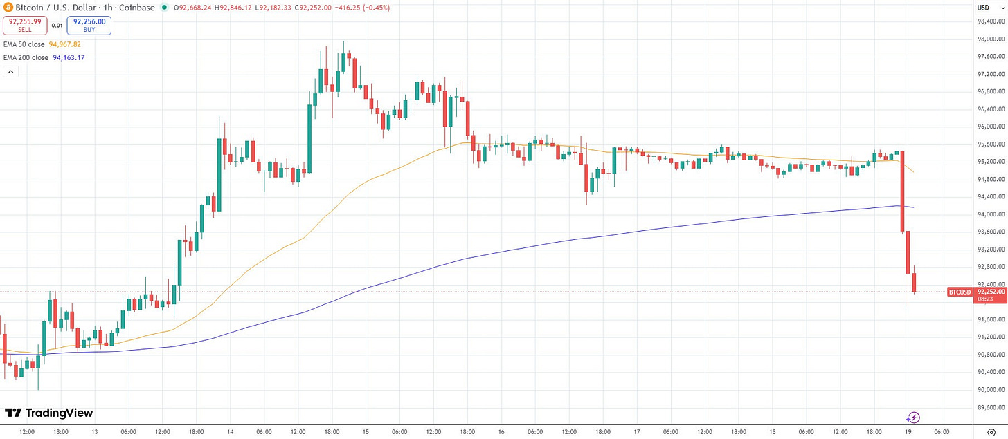 Next thing you know, itâs printing sub-$92,000 on Coinbase